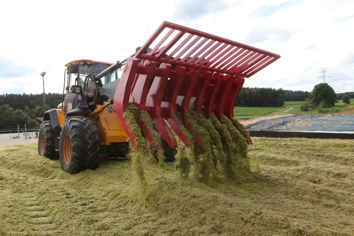 Siloverteilgabel / Astschieber mit Dreipunktaufnahme und Adapter für JCB Radlader |